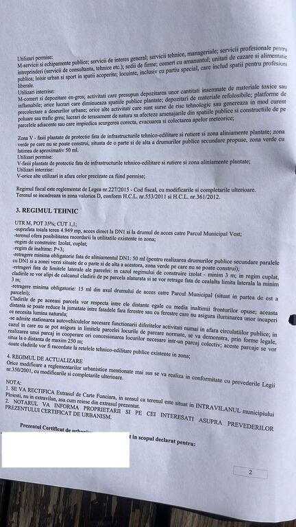 Centura de Vest Ploiesti, in dreptul Parcului Municipal Vest, teren intravilan industrial in suprafata de 4949mp cu o deschidere de 16 ml. Terenul are dubla deschidere la Centura de Vest si la drumul de acces in Parcul Municipal . Acte la zi , inclusiv certificat urbanism.