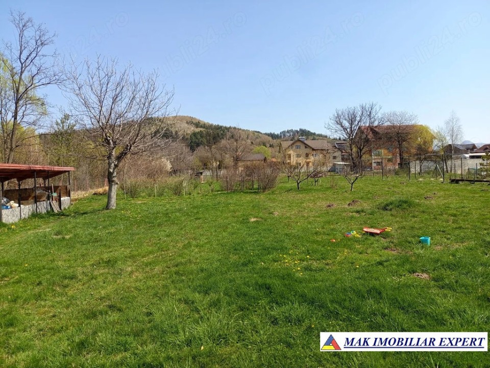 Vand casa cu teren In Bughea de Sus. Suprafata casa 92 mp construit. Suprafata teren 3103 mp + curte comuna 257 mp (depozit comun 33 mp). Casa este din caramida si piatra sculptata cu posibilitati de extindere (mansardare). Utilitati complete: apa, canalizare, curent electric, internet, cablu, supraveghere video. Sistem de incalzire centralizat -termosemineu 45 kw si calorifere (deserveste si apa calda pentru boiler in timpul folosirii). Panouri solare aprox 9 kw montate pe structura metalica detasata de casa (in gradina pentru eficienta maxima la insorire) cu depozitare sub structura. Termoizolatie sub pardoseala 10 cm polistiren extrudat. Termoizolatie exterioara 10-20 cm (exceptie un perete inca netermoizolat). Foarte eficienta termic. Spatiu depozitare lemne. Curent electric tras inclusiv in gradina. Gard complet pe intreg perimetrul proprietatii (stalpi metalici si plasa tesuta) Livada cu pomi si arbusti. Tuja si arbusti ornamentali pe limita de proprietate. Fantana comuna in curte cu pompa apa electrica. Distanta pana in Campulung aprox. 10 minute (pe jos) si 1-3 min cu masina.