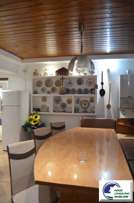 Va prezentam in vederea vanzarii o proprietate constructie noua 2003, cu o suprafata desfasurata de 216,8 mp dispusa dupa cum urmeaza: Sunt doua corpuri de casa individuale,cea principala avand la parter pe o amprenta cu suprafata utila de 138,5 mp- vestibul, living spatios cu acces la o terasa loja cu o panorama spectaculoasa, bucatarie deschisa cu acces la dinning, hol, baie mare ,generoasa cu geam de aerisire . Livingul este modern si accesoriat foarte frumos cu mobila deosebita ,traditional si modern in acelas timp,semineu perfect functional pe lemne incadrand zona de zi. Mansarda - trei dormitoare, fiecare cu acces la balcon, deservite de o baie. Podul - este inalt si poate fi folosit pentru depozitare. Proprietatea a fost edificata pe un teren de 600 mp, intr-o zona linistita, cu vedere libera la Muntii Bucegi, dispune de toate utilitatile: canalizare, curent, gaze si acces prin drum asfaltat.Corpul al doilea are un garaj spatios de 31 mp suprafata construita ,si la etaj pe o structura de lemn sunt doua dormitoare si o baie,balcon,casa scarii. Curtea are acces pentru masina ,spatii verzi cu flori si pomi fructiferi,un foisor pe fundatie de beton,constructie rustica frumos amenajata ,gratar.