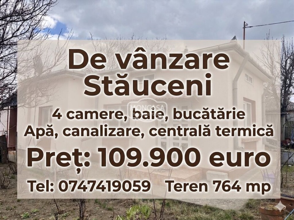 De vânzare in Stauceni casă compusa din 4 camere, baie, bucătărie si anexe.