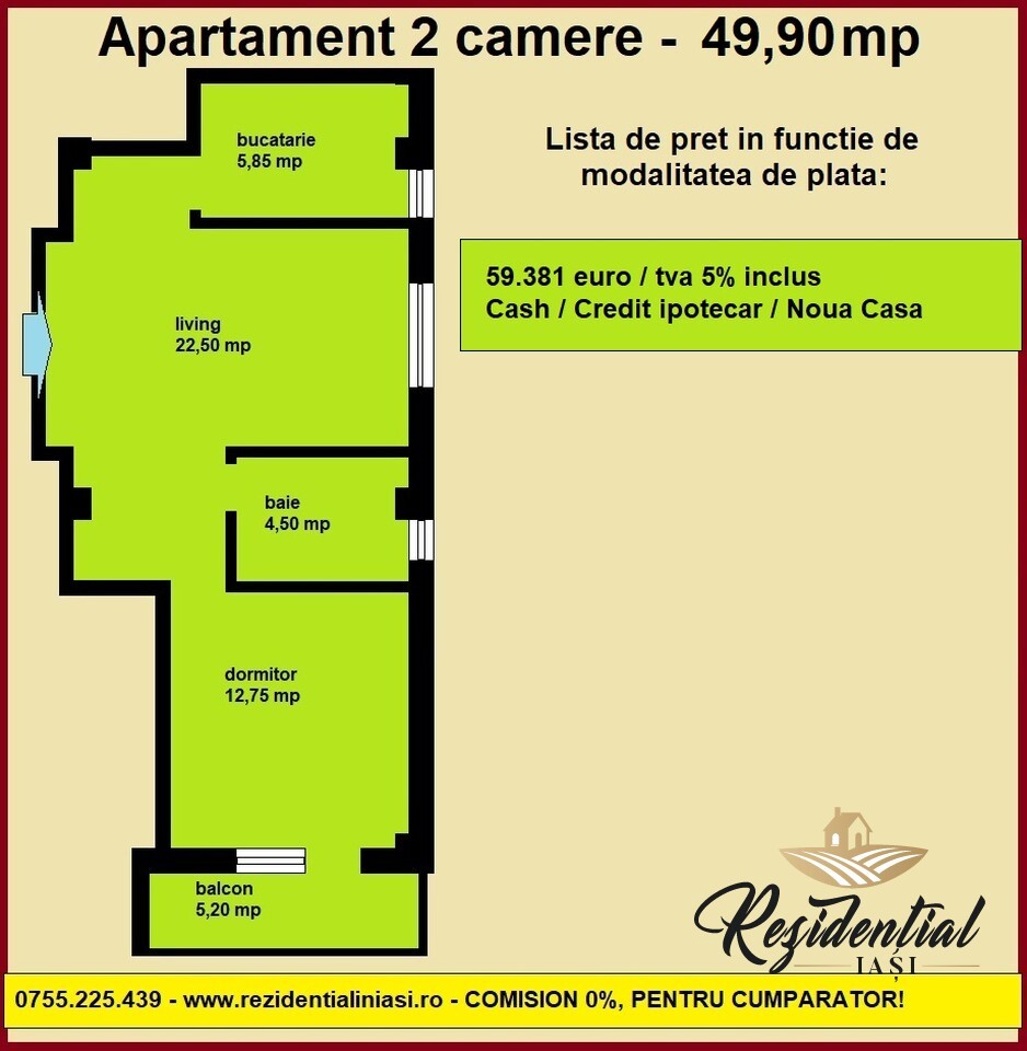 Pretul este de 59.381 euro/tva 5% inclus, se accepta si plata prin credit bancar ipotecar sau programul Noua Casa.