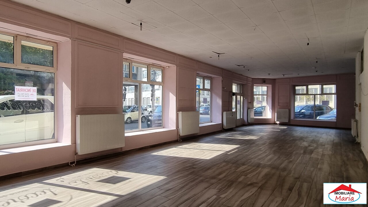 Spatiu comercial central cu vitrine mari la strada, front la 2 strazi, 2 usi de acces direct din strada, compus din parter si subsol inalt, suprafata utila totala este 359 mp din care PARTER 182 mp si SUBSOL 177 mp, ocupabil. Microcentrala, toate utilitatile, Pret 1500 Euro/luna; Tel 0745760477.