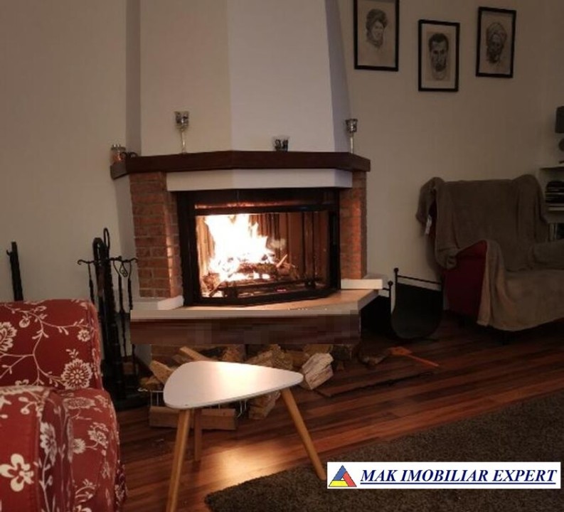 Vila este un adevarat conac cu living de 40 mp cu semineu, unul din cele 4 dormitoare are 30 mp. O prispa superba, bucatarie mare, incalzire in pardoseala. 3 bai, 2 foarte mari. Centrala este pe lemne dar este foarte buna - maxim 2 focuri pe zi datorita incalzirii in pardoseala. In spatele casei este o magazie cu 2 camere care poate fi transformata in locuinta.