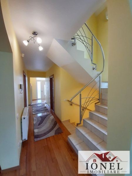 Casa de inchiriat in Alba Iulia situata la 700 m de Kaufland - Stadion, constructie 2009, D+P+M , in suprafata construita/desfasurata de 269 mp si utila de 188 mp. Demisolul (78 mp) este compus din bucatarie, baie, camera tehnica, dressing, camara si acces terasa. La parter (88 mp) se gaseste un living extins, baie, camera, hol si terasa. Mansarda (103 mp) este formata din trei dormitoare, baie si doua terase. Pe terenul in suprafata 395 mp mai este construit garajul si magazia.