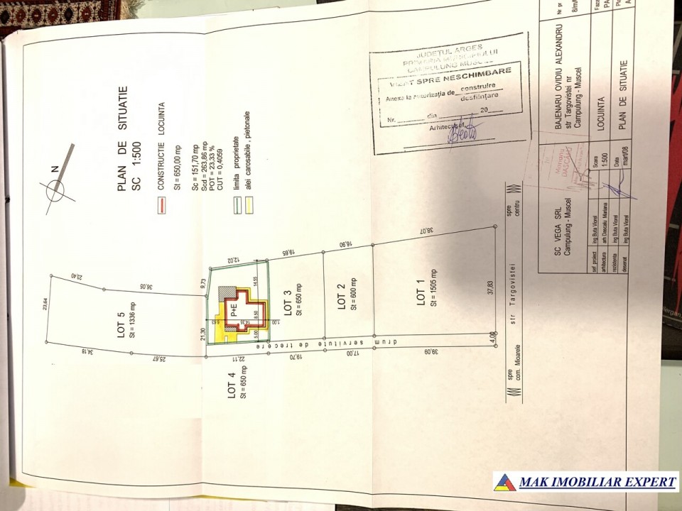 Teren: 1300 mp format din 2 loturi a 650 mp pe unul curtea si constructia.