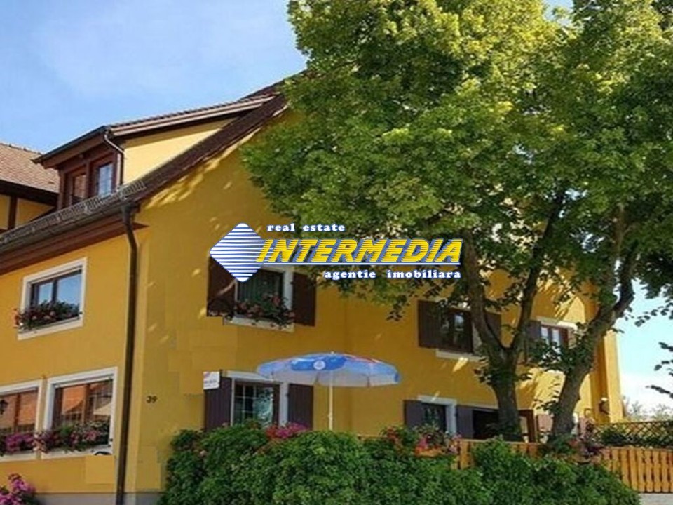 Va oferim spre vanzare o Pensiune in Judetul Alba, Zona Vintu de Jos , compusa din : Subsol in suprafata de 200 mp Parter -200 mp Restaurant , doua grupuri sanitare . Etaj -200 mp – 9 camere , 9 bai , 9 balcoane . Parcare proprie , teren aferent 2500 mp .