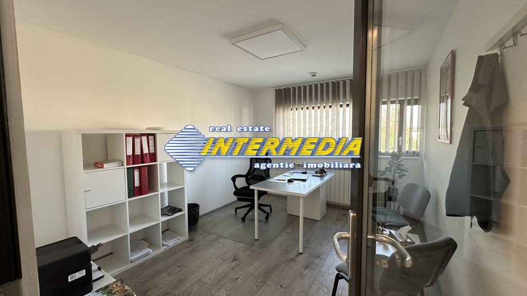 - Parter: 4 Birouri,1 Baie cu 2 grupuri sanitare finisate, 1 Bucatarie Servit Masa mobilata si utilata complet, Scara interioara moderna.